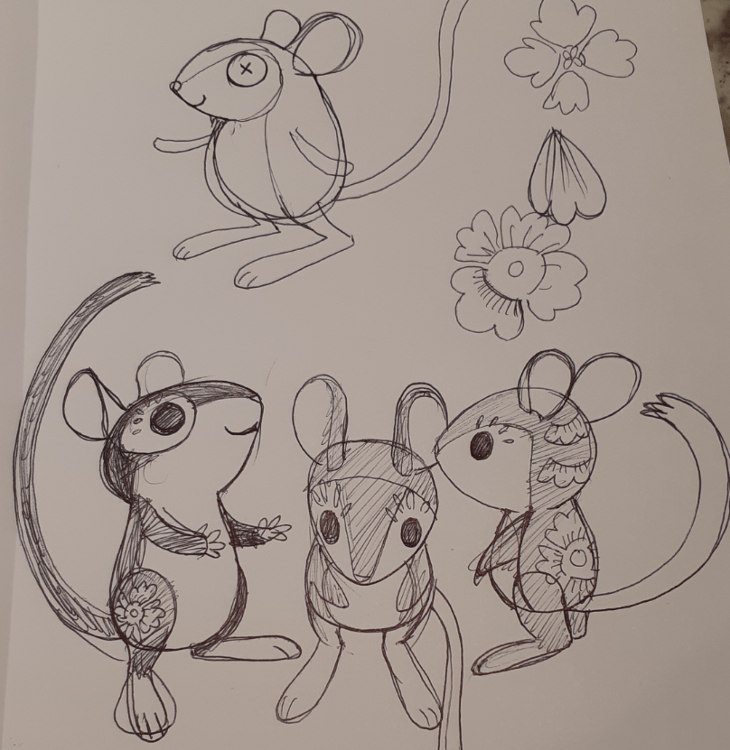 This zodiac “rat- more-like-mouse” was based off the jumping mice design from Coraline, the mice on the book cover of “poppy and rye”, and general details added onto rats representing the year of the rat. I thought I was going to make the head more separate from the body, but the “basic fetus” shape is one of my favourite shapes to make. Like Quilava, the base was made with two halves making the top side and underside.